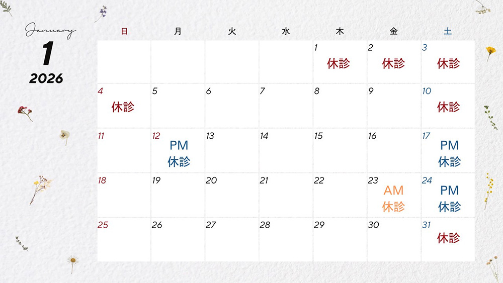 2026年1月の営業日をお知らせいたします。